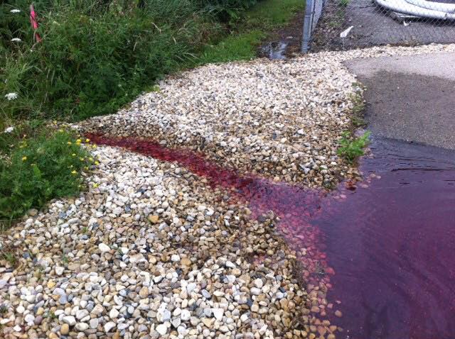 Photo: Toxic permanganate discharge from Kipp groundwater extraction and treatment system (GETS) on Aug. 9, 2015